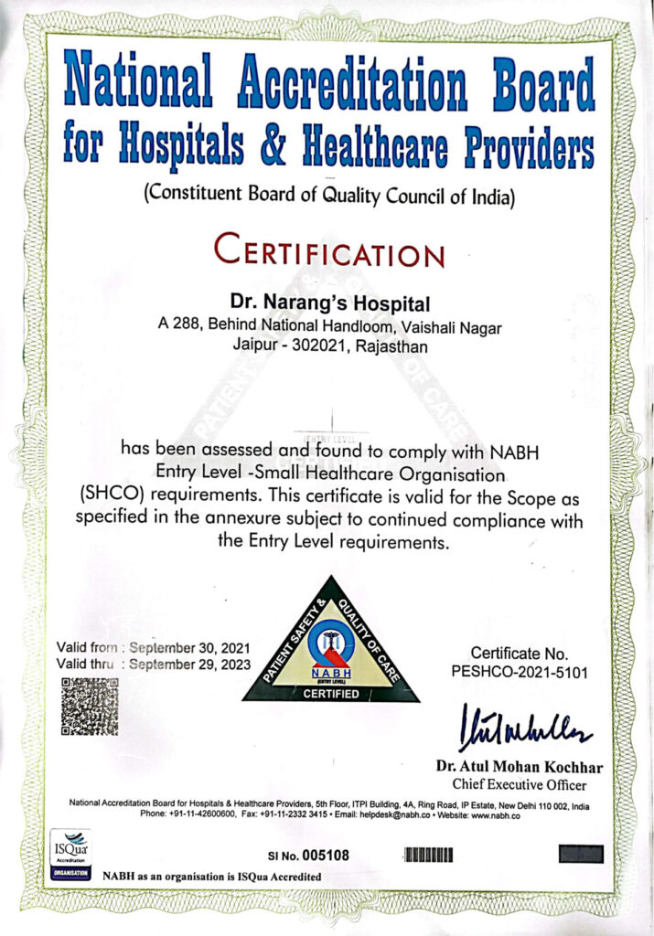 You are welcome to visit us at Dr. Narang Hospital, Behind National Handloom, A-288, Vaishali Nagar, Jaipur – 302021.